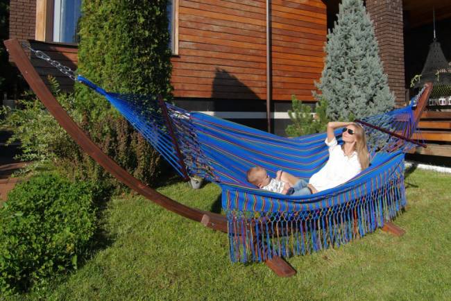 Красивый большой гамак TULIP сделан вручную из высококачественного хлопка. Мягкая фактура материала прекрасно адаптируется к форме вашего тела. Полотно гамака украшено бахромой, сплетенной вручную из волокон настоящего бразильского ореха - дерева, растущего только на севере Бразилии, из бразильского ореха делаются и стропы - петли. Для поперечных перекладин используется древесина "Массарандуба", продукция заверена "SmartWood", компанией, которая придерживается строгих экологических стандартов. Размеры гамака позволяют уютно расположиться вдвоем, наслаждаясь приятным отдыхом на природе, а в доме стать также украшением интерьера.