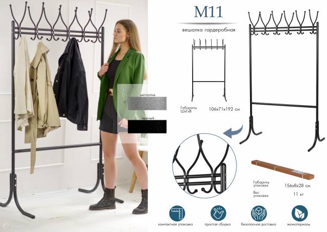 Классическая общественная офисная вешалка с крючками в виде цветочного бутона Вешалка рассчитана максимально на 16 посетителей: 12 крючков для одежды, столько же для головных уборов Одежду можно вешать и за петли и на вешалках-плечиках Конструкция обеспечивает устойчивость при максимальной нагрузке Вешалка легко собирается без помощника, компактно упакована Вешалка напольная - незаменимый предмет для хранения верхней одежды и носимых вещей в коридор, прихожую. Будет хорошей альтернативой вешалке настенной. Отлично подойдет и для дома и как офисная. Крючки можно использовать и для плечиков, и для одежды, и для размещения органайзера. Отличный комплект в прихожую, в гардероб, в гардеробную комнату, в баню, в ванную, на балкон - вешалка напольная, настенное зеркало и банкетка в одном стиле. Вешалка стойка напольная для хранения вещей может быть как деревянная, так и металлическая. МАТЕРИАЛЫ: труба д. 30 мм, крючки- труба д. 12 мм, полимерное покрытие УПАКОВКА: 156х28х8 см., 1 место ВЕС: 11 кг Цвет: металлик, черный